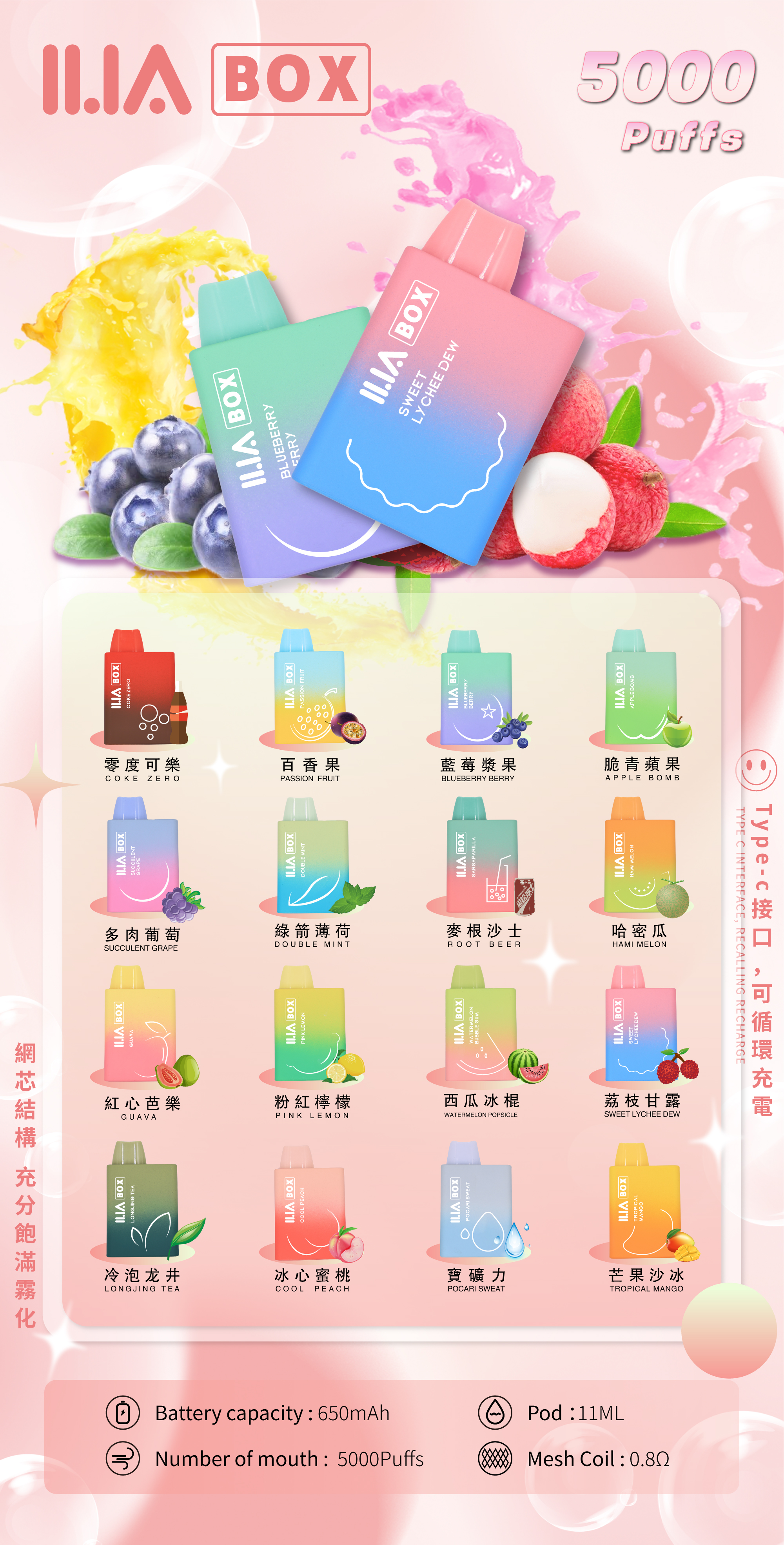 ILIA🔥哩亞🔥推出了全新的ILIA BOX拋棄式5000口電子煙,擁有11毫升的煙油容量和0.8Ω的歐姆值,配備650mAh的電池容量,採用TYPE-C重複充電方式。這款一次性電子煙產品結合了高容量、優質的煙油和持久的電池壽命,為用戶提供了長時間、持續的極致吸食體驗。現在就體驗ILIA BOX,享受卓越的電子煙體驗!